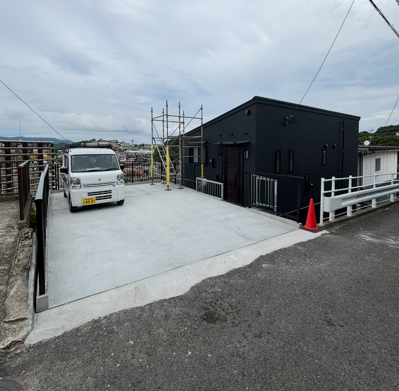 長崎市三原の道路下の土地でしたが、創意工夫し2階に玄関を作ったり、駐車場を鉄骨で嵩上げしたり、長崎県(坂の多い町)特有の工法でプランしました。